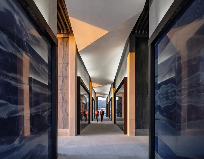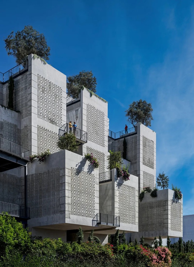 公墓分层设立的阳台、庭院和梯田式花园从建筑向外延伸,提供眺望点、宽敞的座位以及一个适合沉思的空间。