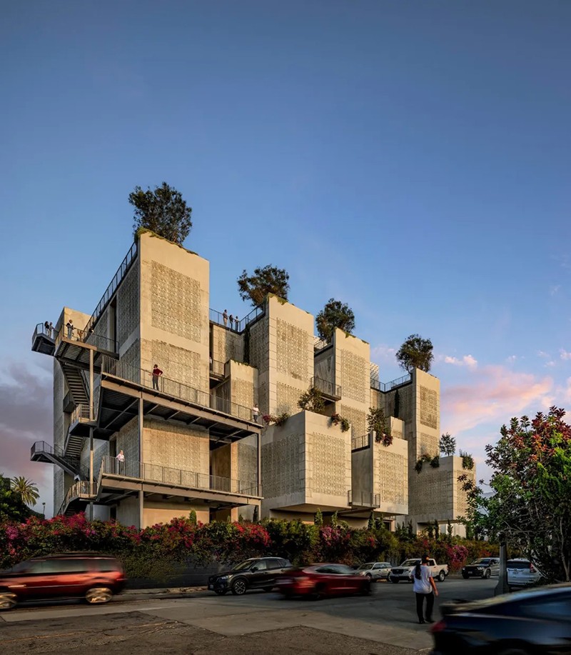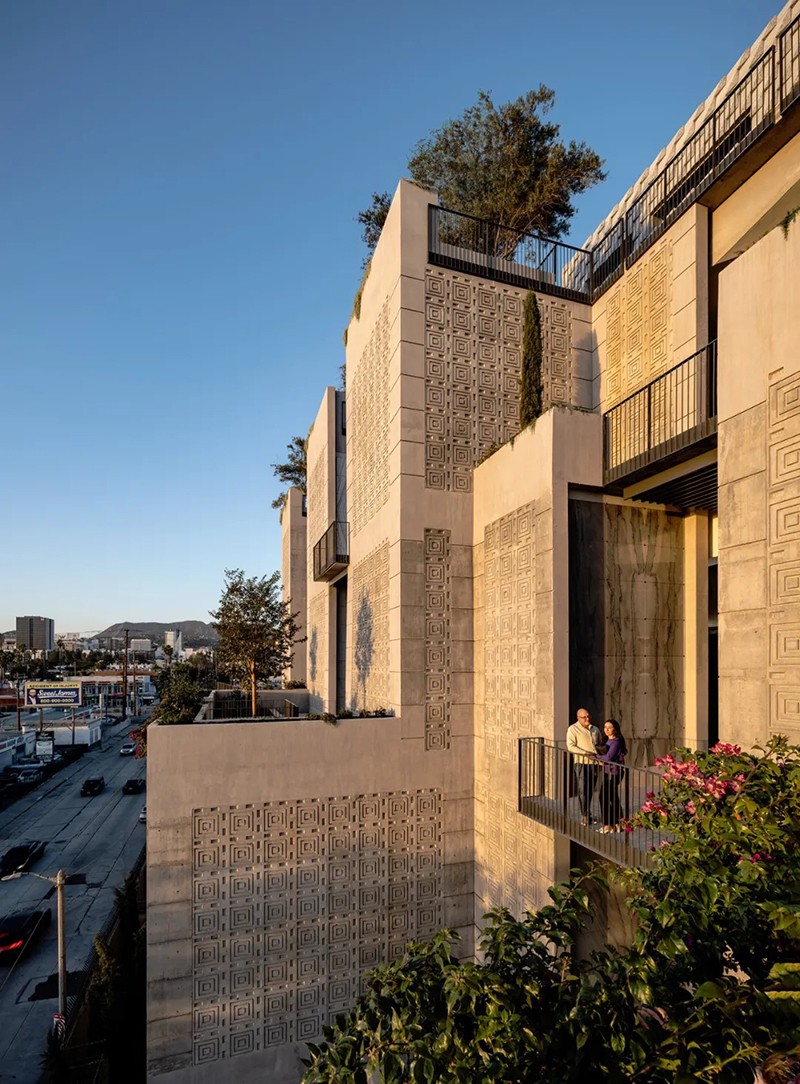 这座创新性的垂直陵墓矗立于好莱坞永恒公墓之上,高达 100 英尺(30.5米),陵墓内部设有五层,每层高达 20 英尺(6.1米),混合配置了墓穴和骨灰龛。