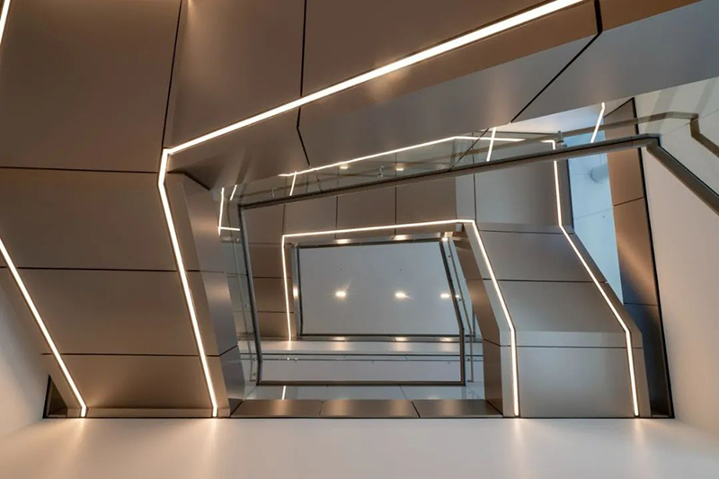 建筑设计注重使用经过严格评估的材料,超越了LEED标准要求,与总部大楼一样,获得了LEED BD+C金级认证。建筑材料的选择都考虑了长期可持续性,确保建筑的安全性与健康性。此外,亲生物设计元素如天然材料、室内绿化和室外景观被广泛运用。