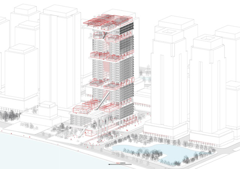 建筑由普利兹克奖得主、法国建筑大师让·努维尔设计,以“垂直城市”为核心理念,融合智慧办公与公共空间。