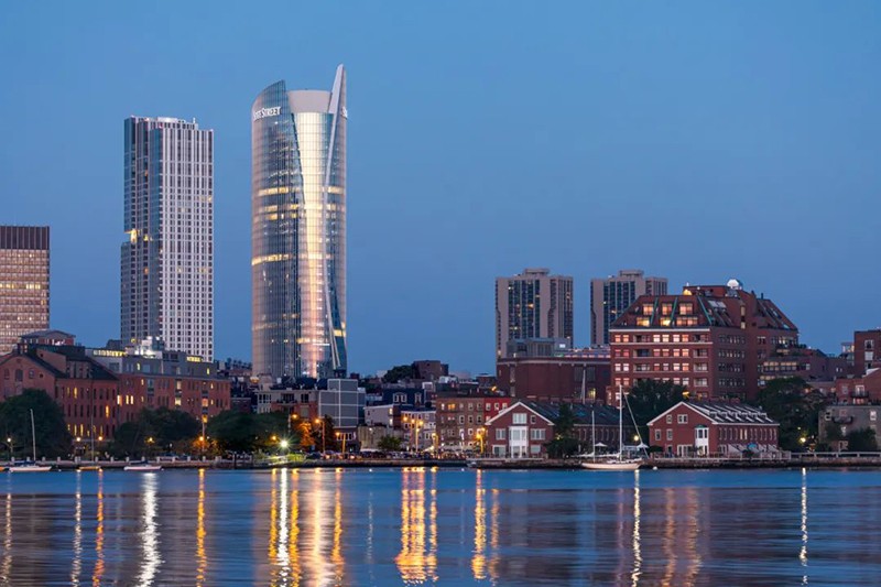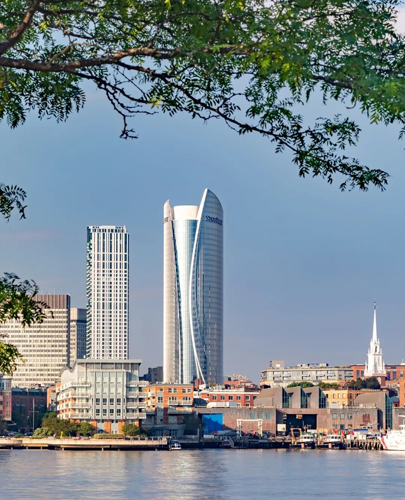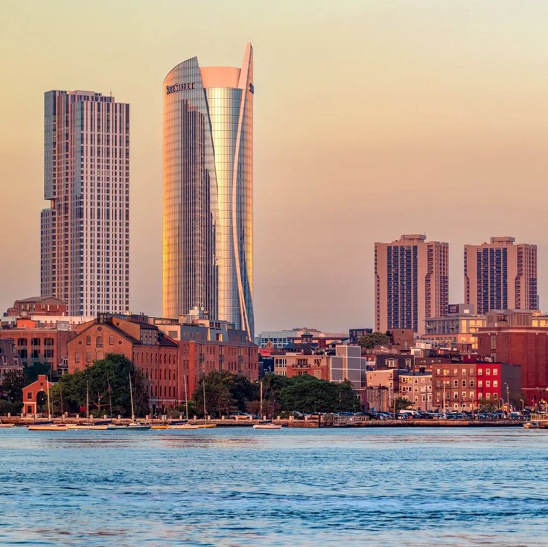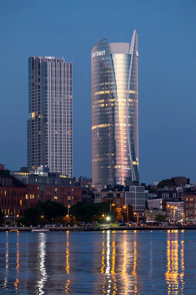 大厦高43层,其独特的船帆造型向上逐级收拢,展现了现代建筑的简约美学,且呼应了波士顿作为历史港口的航海基因。