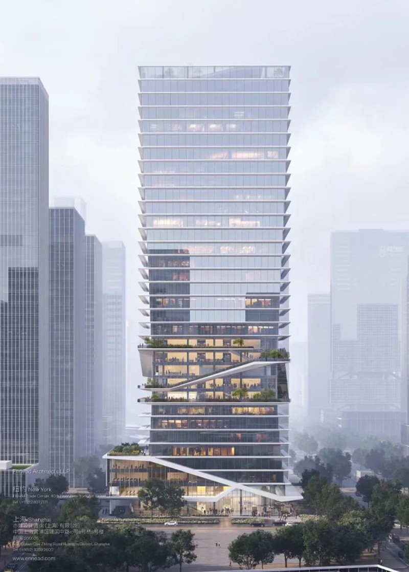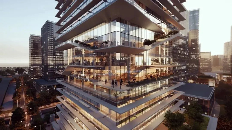项目将为跨国高科技企业提供一个灵活、独特且生动的工作环境。项目建筑设计师Ennead 认为:“创造并提供信息交流与互动的平台是字节跳动的核心使命。交流、交换和协作的喜悦将不断激发创新和变革,人们通过分享与表达形成最终的共识,我们的设计灵感也由此出发……韵律跳动的字节成为了建筑的根本,并在立面上形成一个个交流中心。高效的中央核心筒作为主体结构,在中间逻辑与工具的支持下,提供给人们交流、探索与协作的平台。”