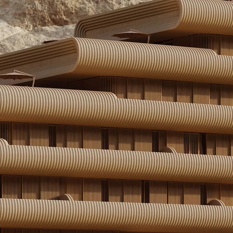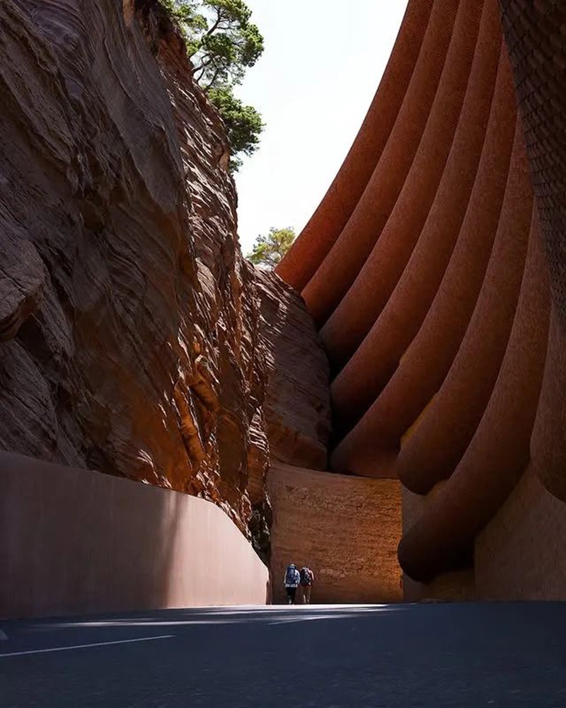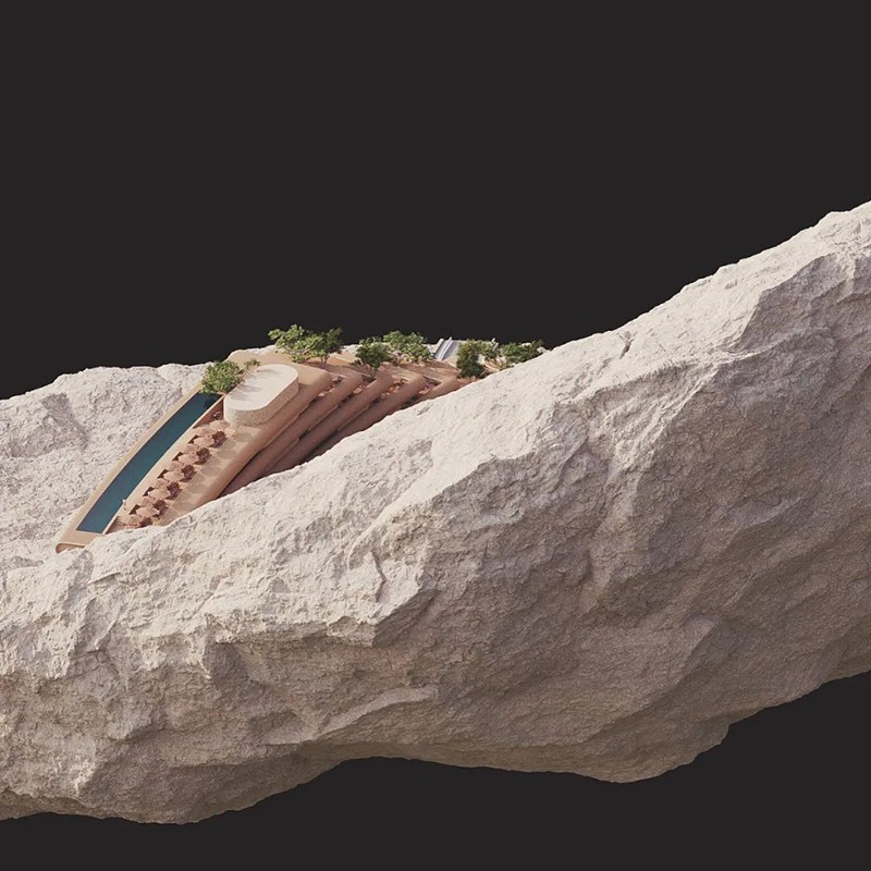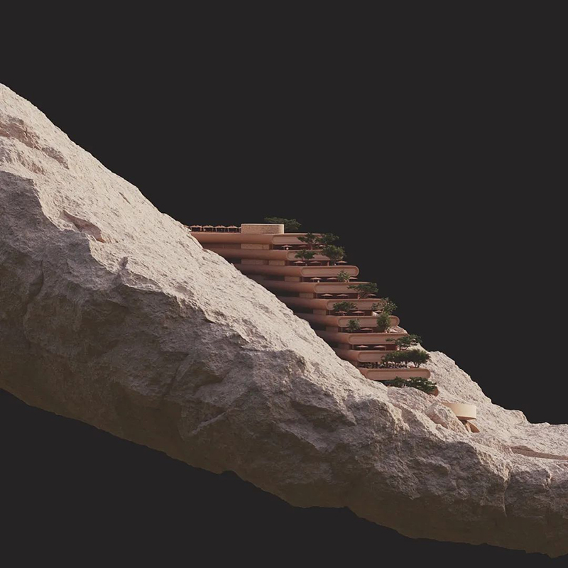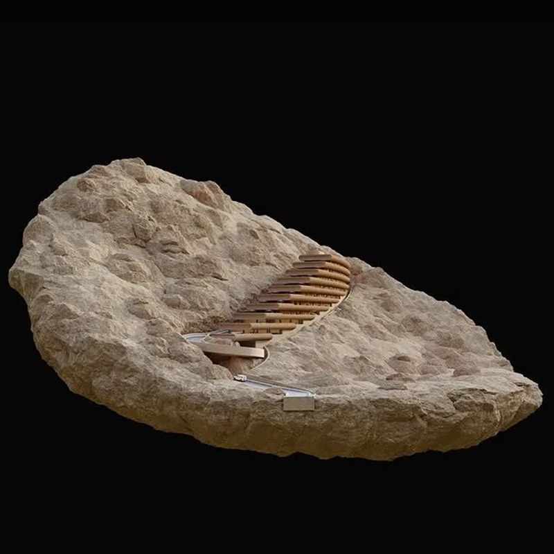 一座向上攀升的建筑。弯曲的楼板与山势相呼应。并非为了引人注目,而是为了静静地融入其中。