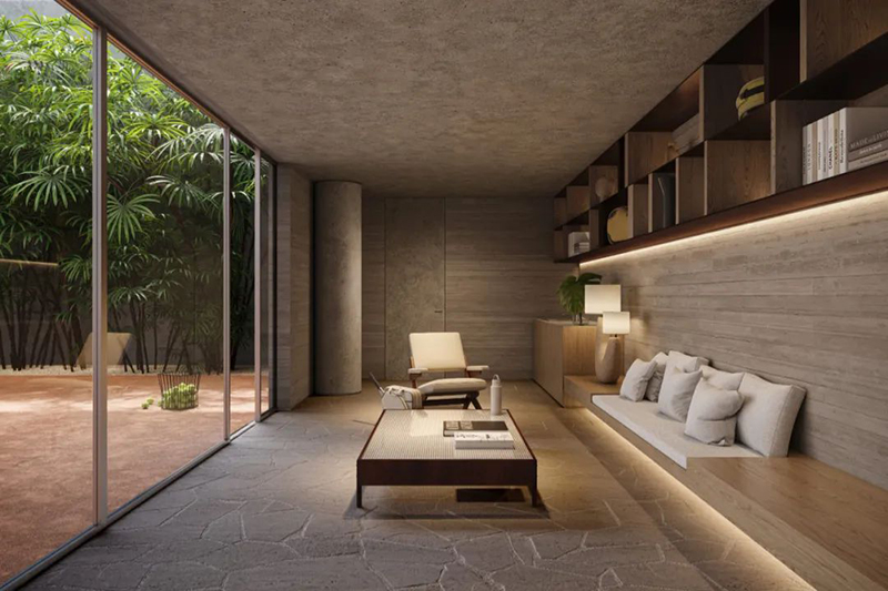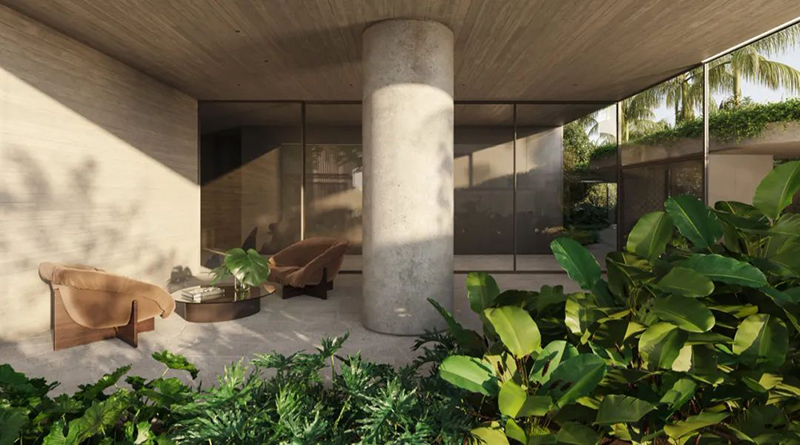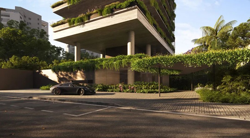 圣保罗的弗兰卡 1055 号建筑,就是这样的倾听者。它位于弗兰卡街与奥古斯塔大道的街角,身处城市最绿意盎然的社区之一。当地建筑事务所提出一个特别的想法:让建筑「消失在绿色里」。他们不要地标式的张扬,而是想打造一座属于城市森林的建筑 —— 一个让行人能自由走过、停下、呼吸的地方。